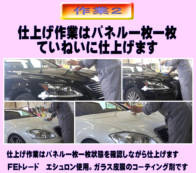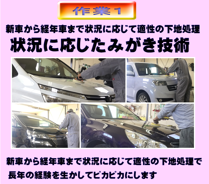 特にガラスコーティングはみがきにこだわってお客様の立場に立ってお客様との対話を大切にして満足していただく仕上がりを提供します