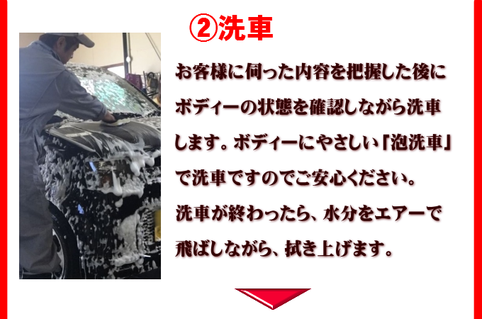 当店ではお客様の愛車の状態を確認して、さらにいつも大切に乗っているお客様のお悩みも聞いて、お客様の納得していただける仕上がりを目指しています。