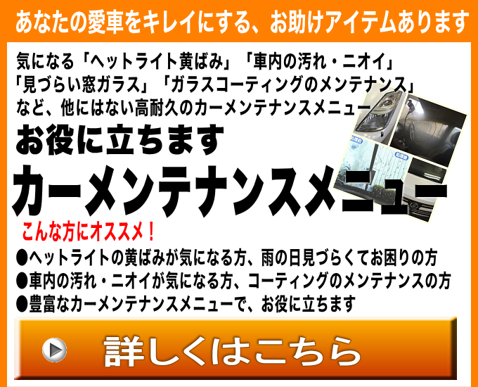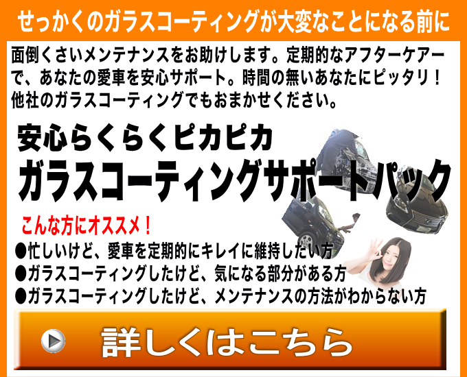 ガラスコーティング施工後から1年間、愛車のピカピカが続く、洗車からメンテナンスまでがセットのなった、お得なメンテナンスパックです