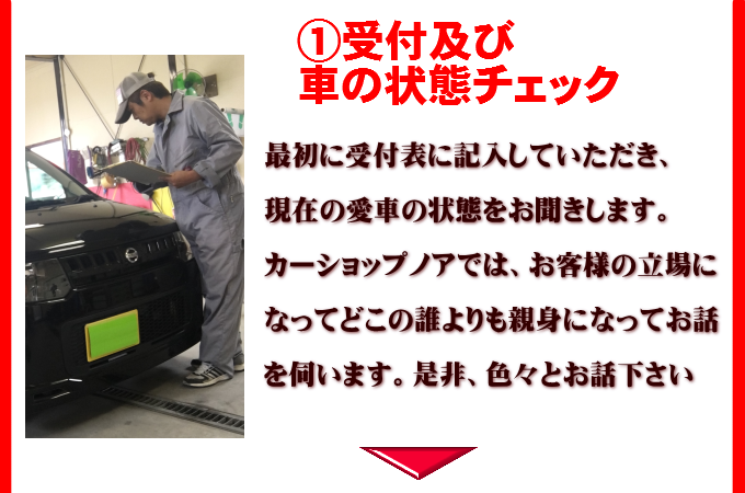 当店ではお客様の愛車の状態を確認して、お客様のお悩みも聞いて、お客様の納得していただける仕上がりを目指しています。